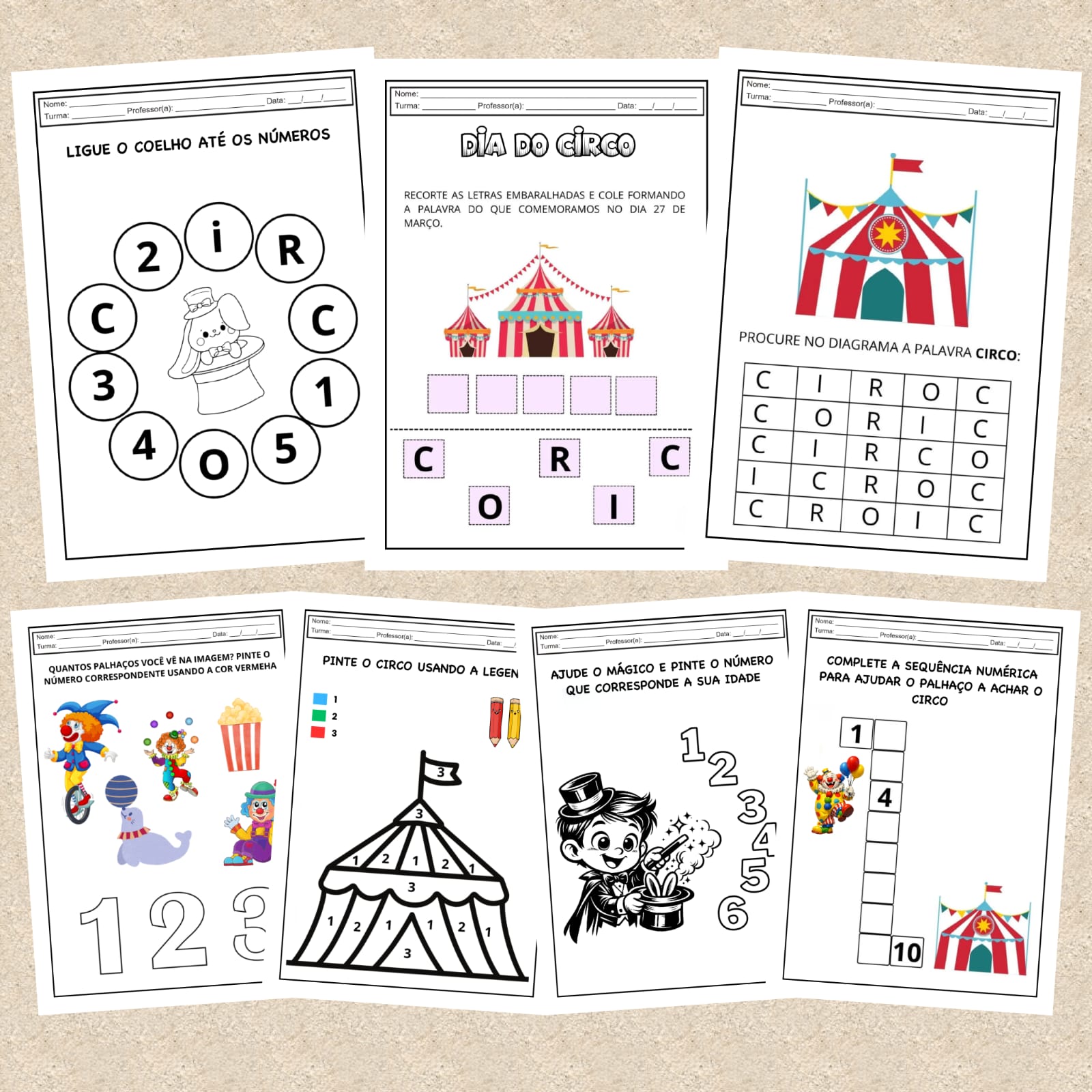 Ideal para trabalhar o Dia do Circo (27 de março) de forma estruturada, lúdica e pedagógica, garantindo atividades variadas e significativas para seus alunos.